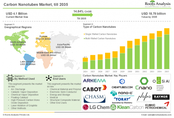 Carbon Nanotubes Market: Industry Trends and Global Forecasts, till 2035: Distribution by Type of Carbon Nanotubes, Method Used, End Use Industry, and Geography