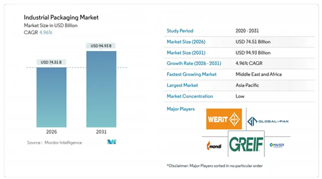 ◈ 산업용 포장 : 시장 점유율 분석, 업계 동향 및 통계, 성장 예측(2026-2031년)